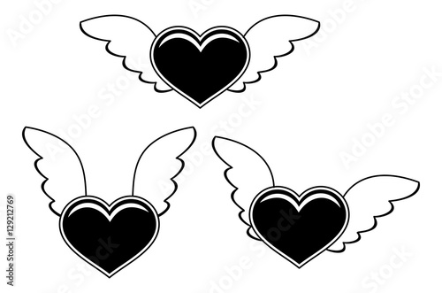 Black And White Silhouette Of Flying Heart Vector Clip Art Buy