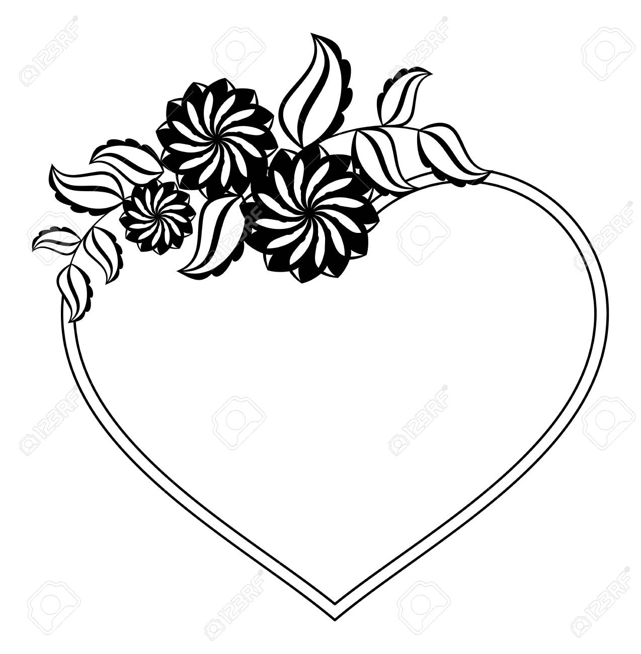 Heart Shaped Black And White Frame With Floral Silhouettes Copy