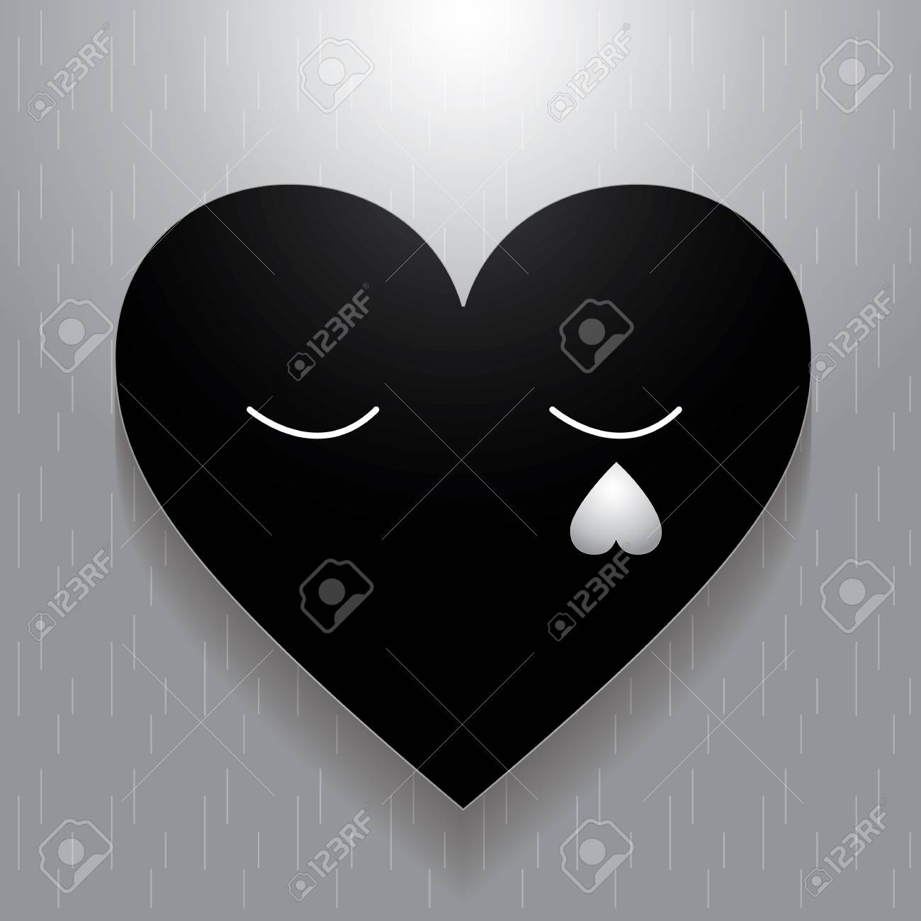 Sad Valentines Day Black Heart Gray Background Vector Art