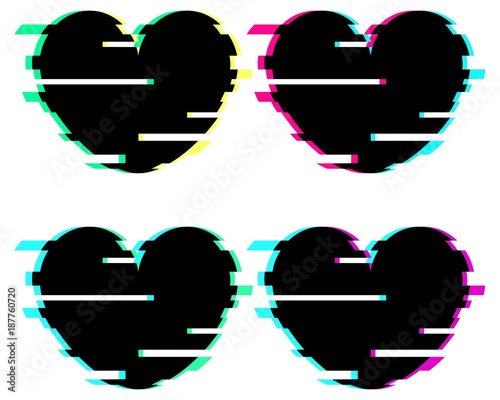Set Of Black Hearts In Glitch Style Vector Heart Illustration