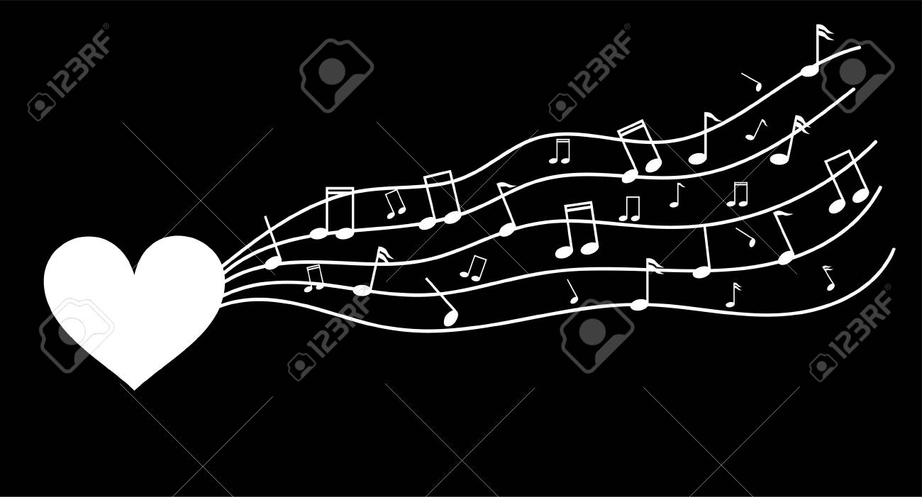 Heart Silhouette On Black Background With Music Playing As Symbol