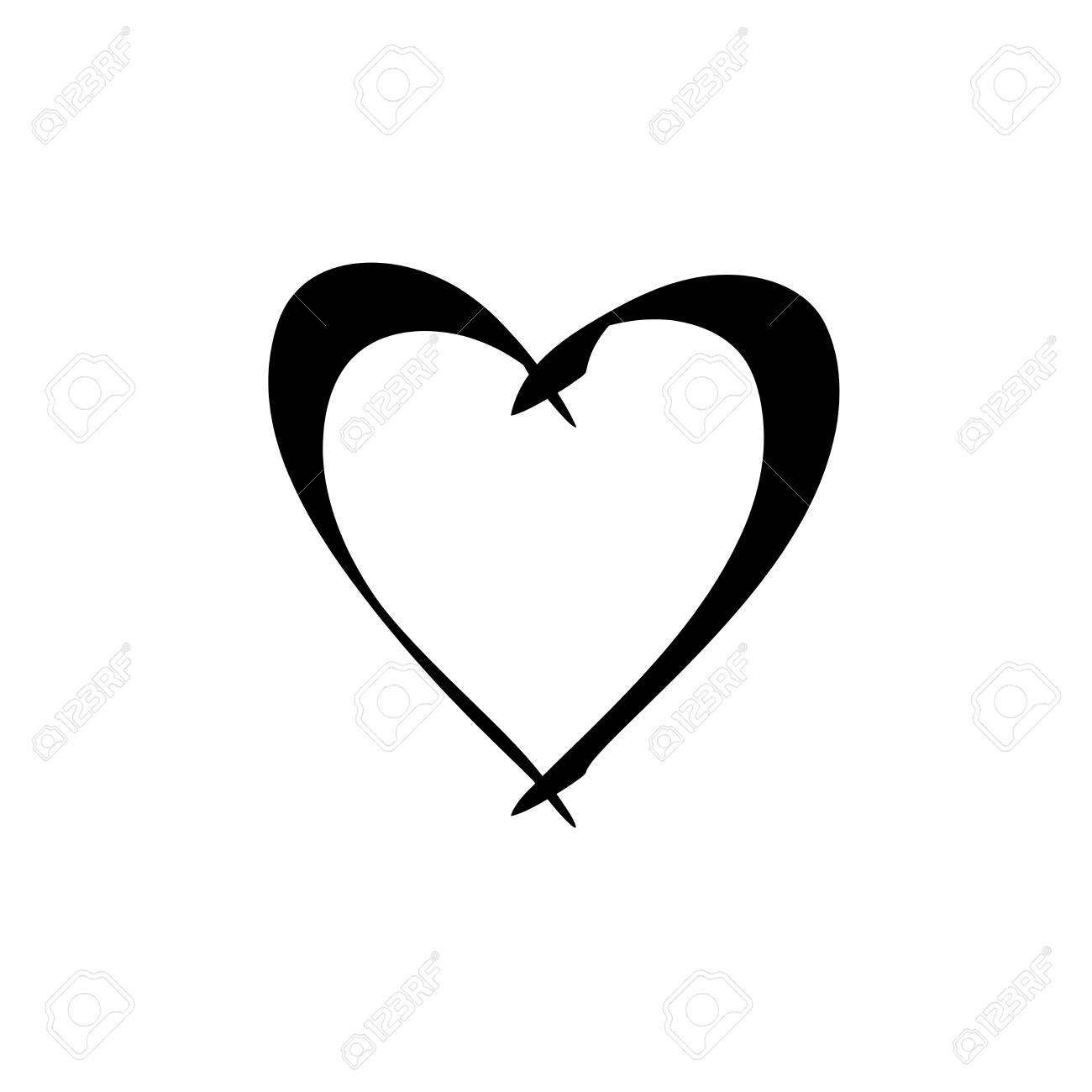 Heart Isolated Black Sign On White Background Romantic