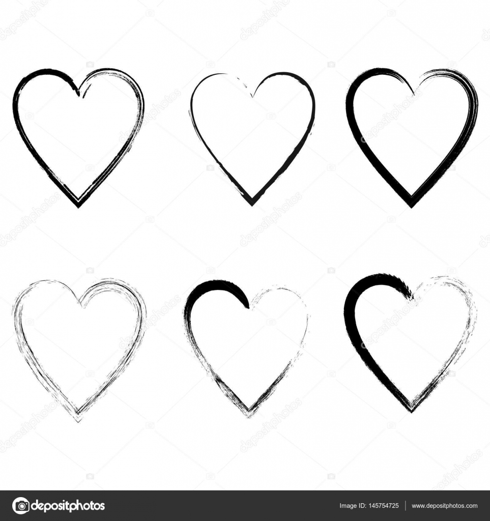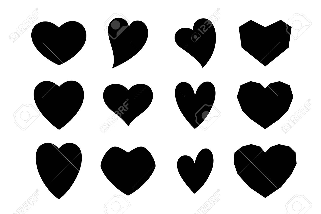Drawn Black Hearts Silhouette On White Background Symbol Of