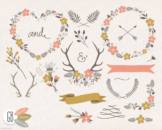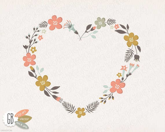Folk Flower Wreaths Clip Art Heart Vector Laurels Borders Etsy