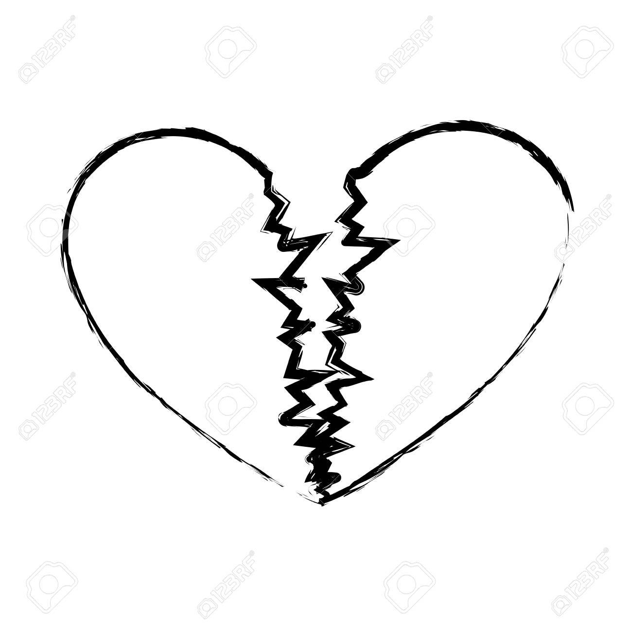 Monochrome Sketch Of Broken Heart Vector Illustration Royalty