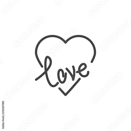 Hand Drawn Geometric Outline Heart Calligraphy Stock Vector