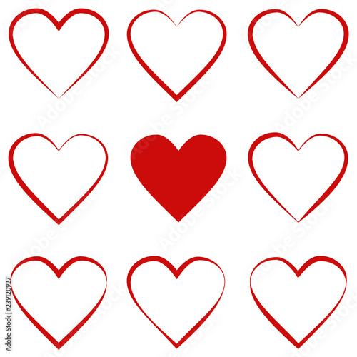 Heart Outline Red Set Symbol Of The Friendship And Intimacy Of