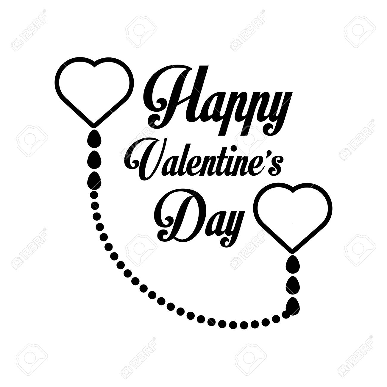 Happy Valentines Day Card Greeting Heart Label Outline Vector