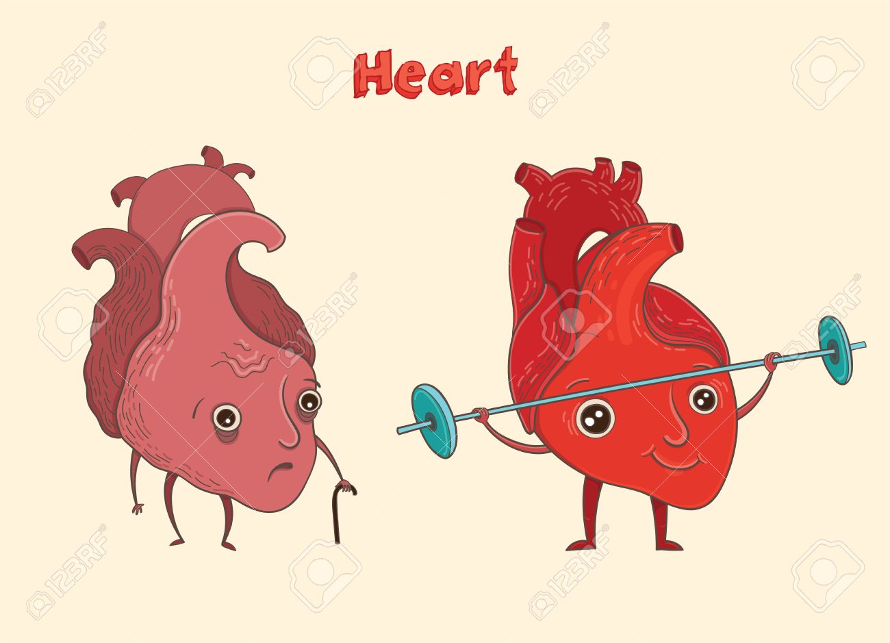 Cartoon Vector Illustration Of Healthy And Sick Human Heart