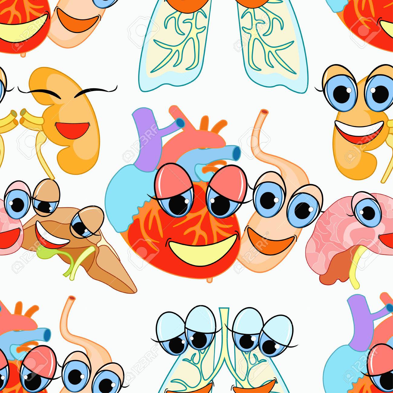 Seamless Pattern With Cartoon Organs Of The Human Heart Vector