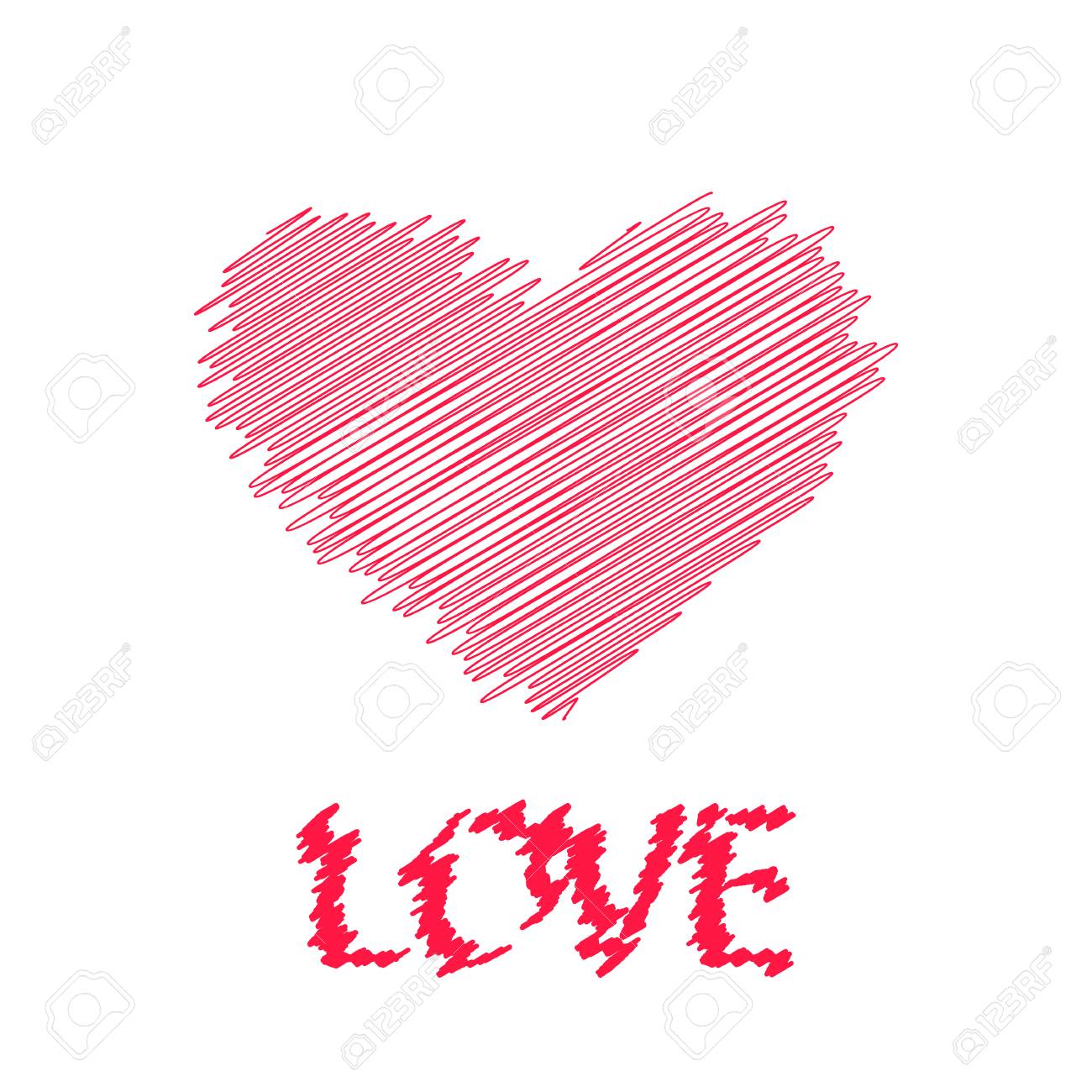 Red Heart Isolated On White Background Sketch Drawing Was Drawn