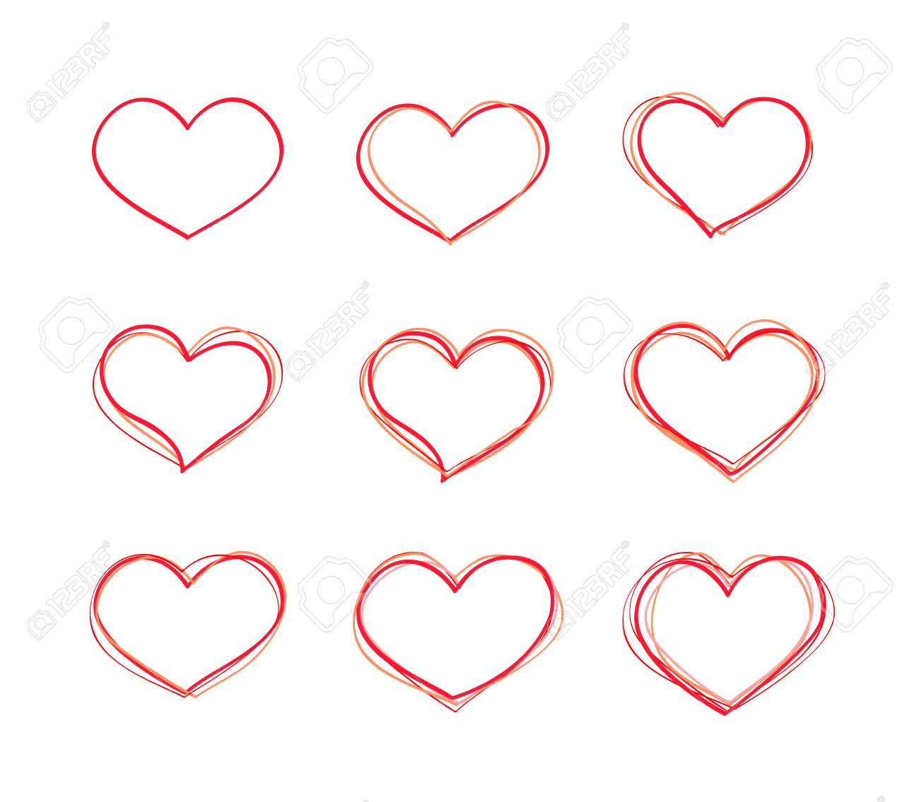 Set Vector Red Heart Hand Drawn Stock Image Download Now