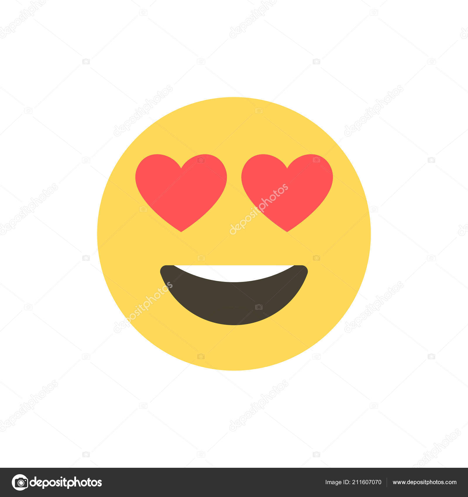 Vector Emoticon Emoji Face With Heart Eyes Icon Isolated On White