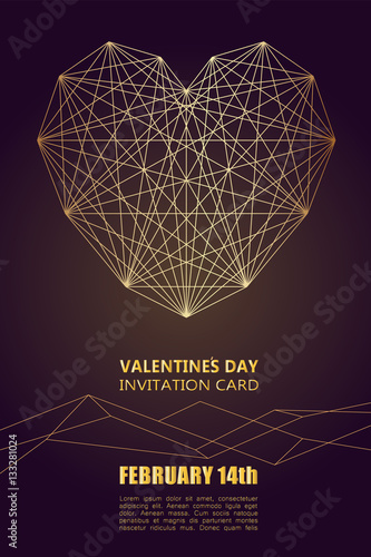 Valentine S Day Invitation Card With Stylized Gold Geometric Heart