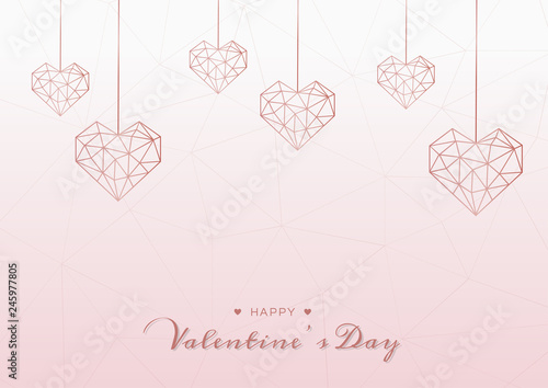 Happy Valentines Day Luxury Background With Pink Gold Geometric