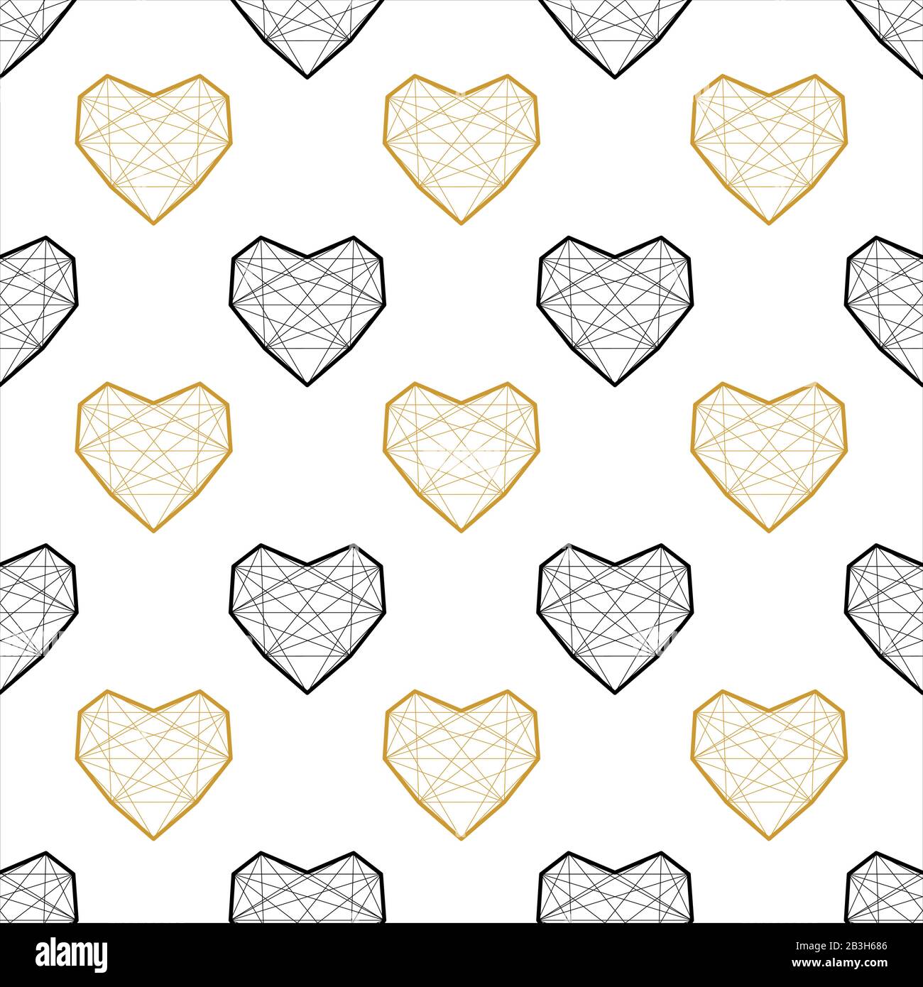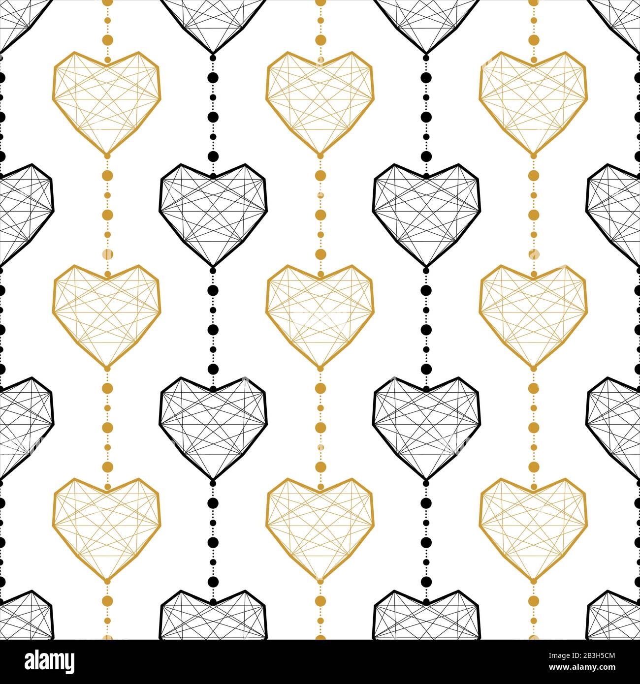 Gold Heart Seamless Pattern Black White Geometric Decoration