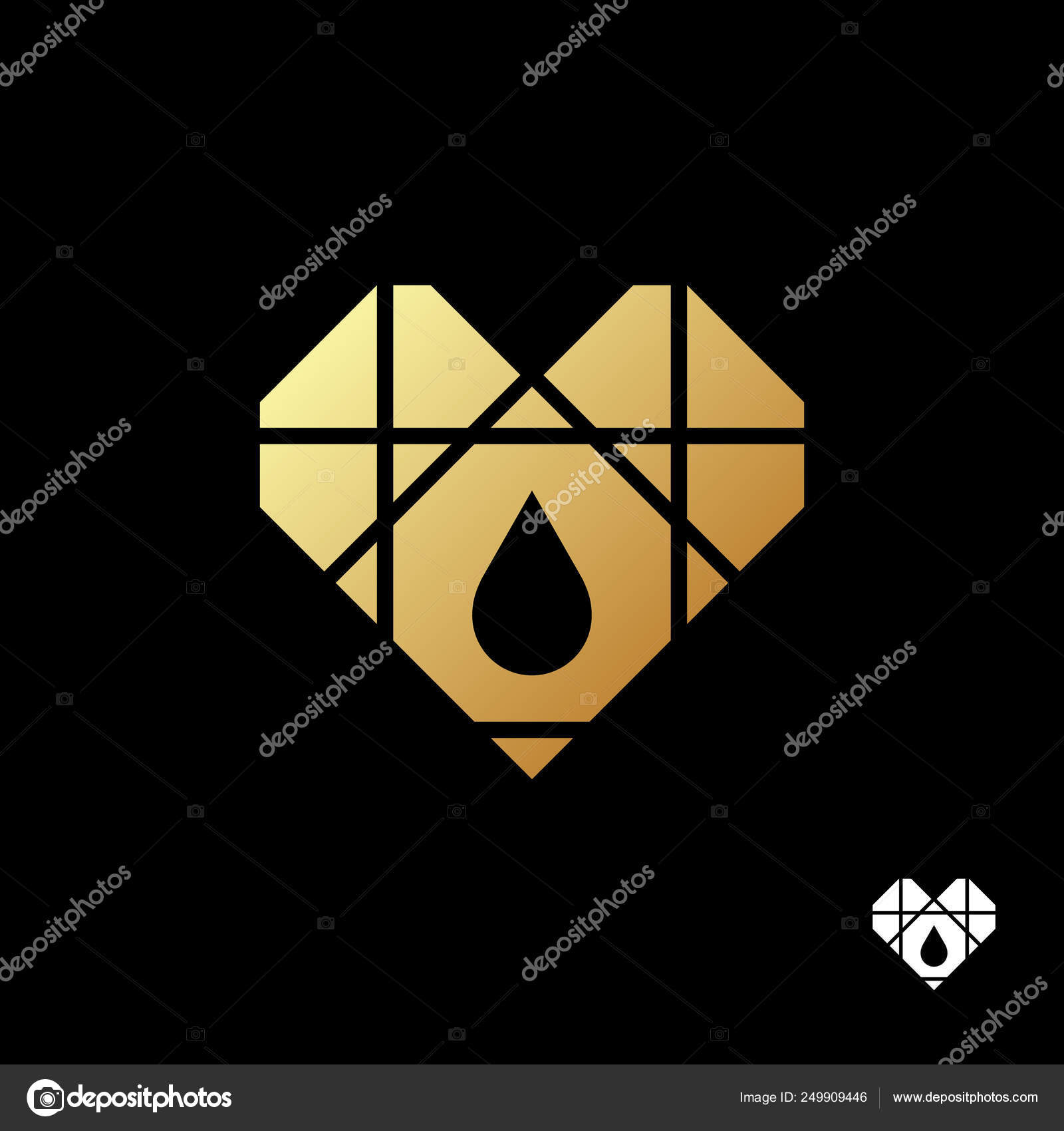 Gold Geometric Medical Heart Logo Template Black Background Blood