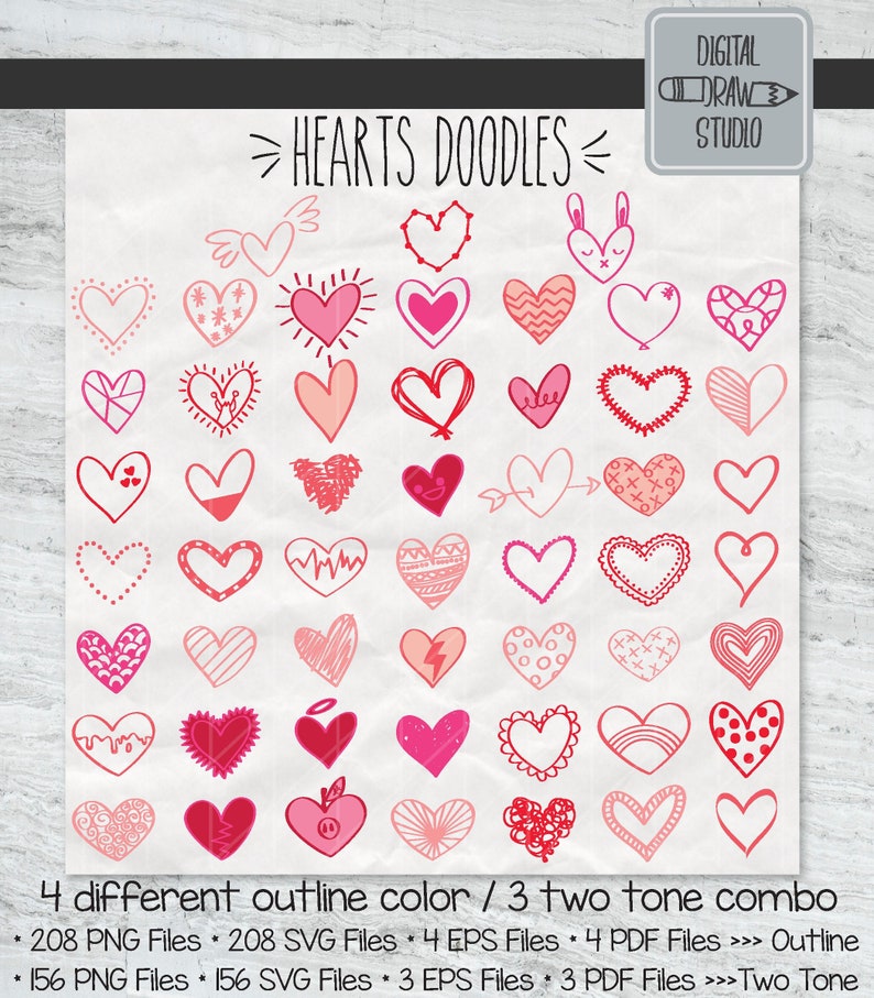 52 Hearts Outline Clip Art Hand Drawn Romance Vector Doodles Etsy