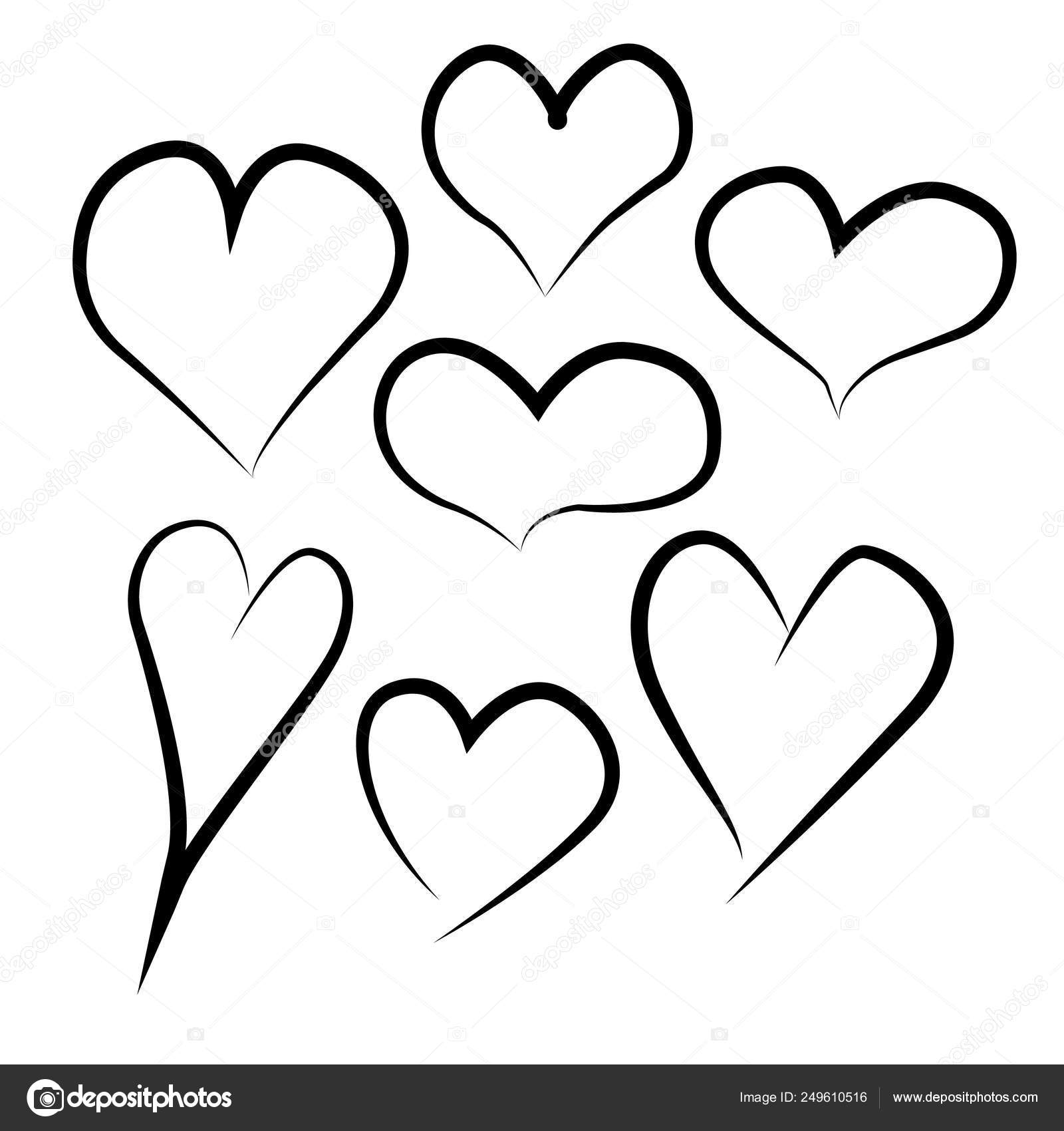 Set Of Outline Hand Drawn Heart Vector Set Of Hand Drawn Heart