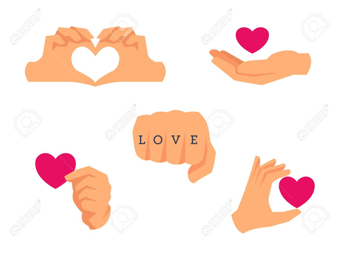 Hands Making A Heart Shape Vector Flat Style Illustration Of Two