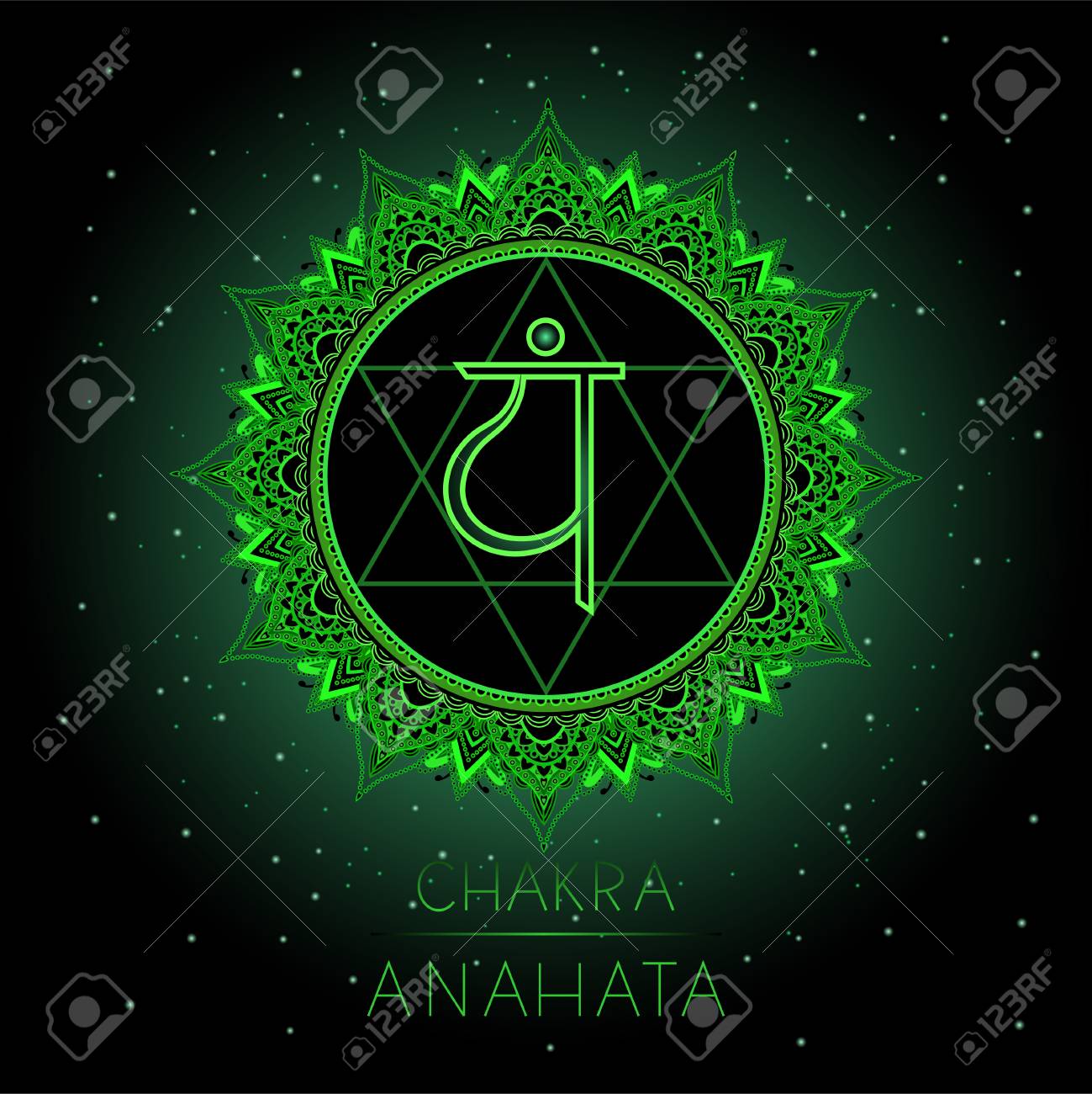 Vector Illustration With Symbol Anahata Heart Chakra On Black
