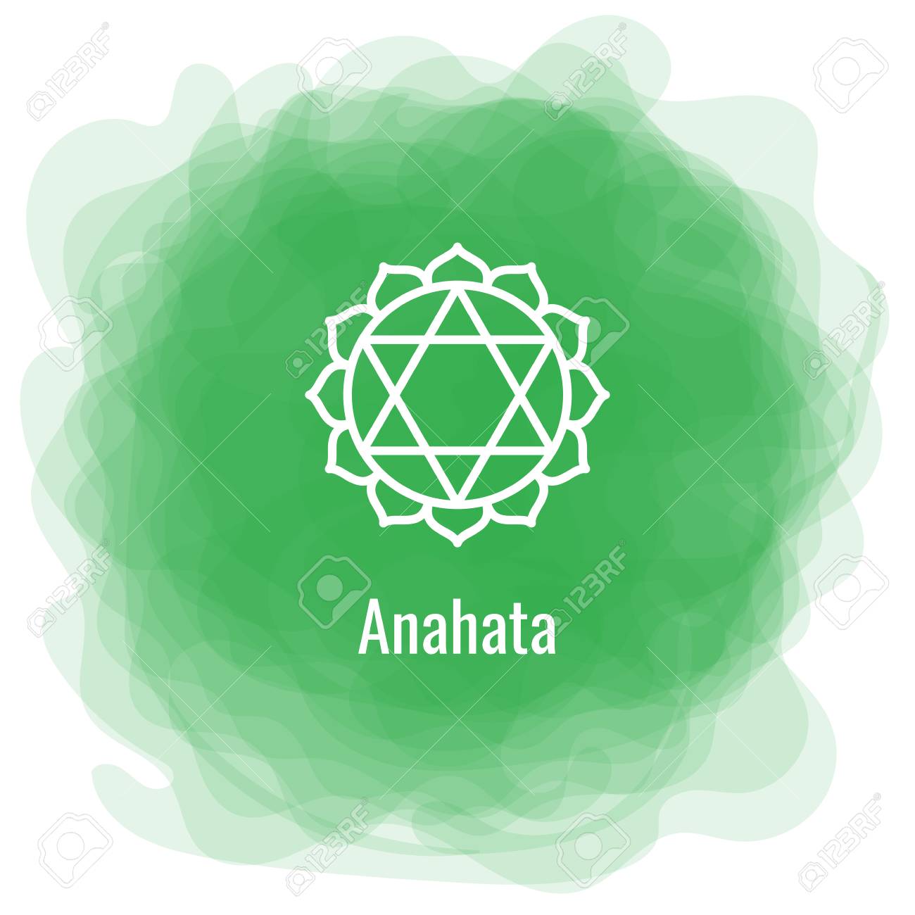 Anahata Chakra Symbol On A Green Watercolor Dot Vector
