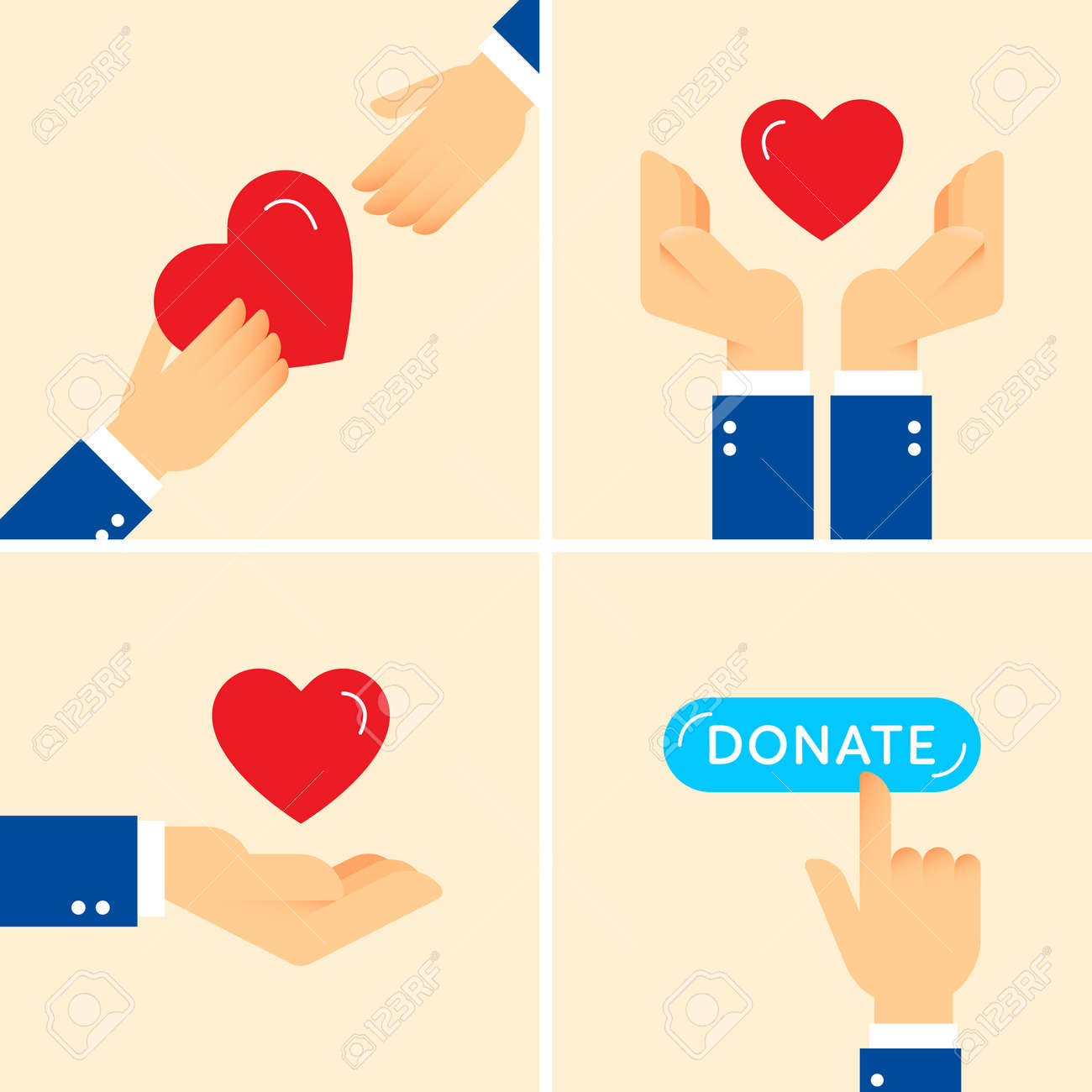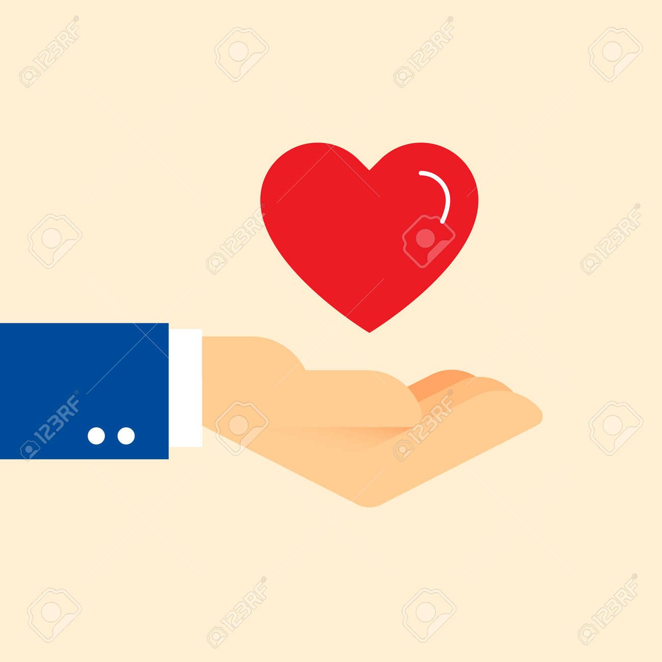 Charity Concept Donator Holding Heart In Hands Vector Illustration