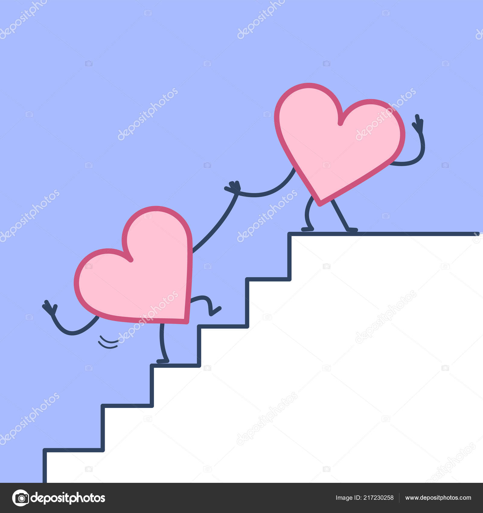 Heart Helping Hand Success Stairs Icon Violet Background Stock