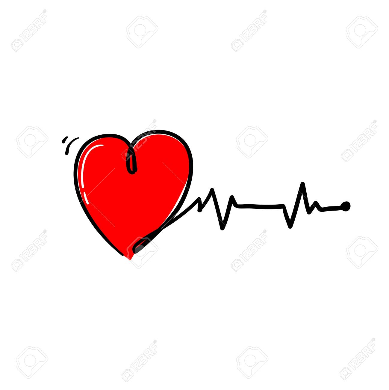 Doodle Heart Beat Illustration With Hand Drawn Style Vector