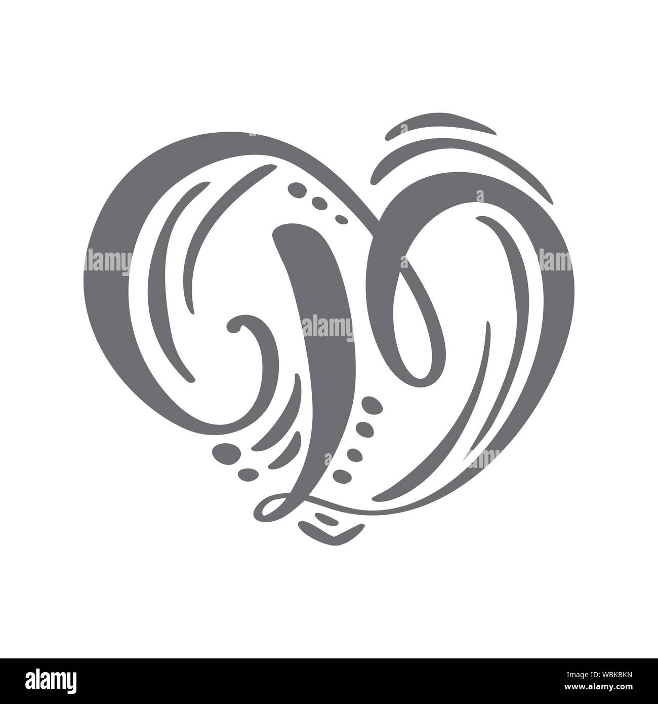 Heart Vector Hand Drawn Calligraphic Scandinavian Floral D Logo