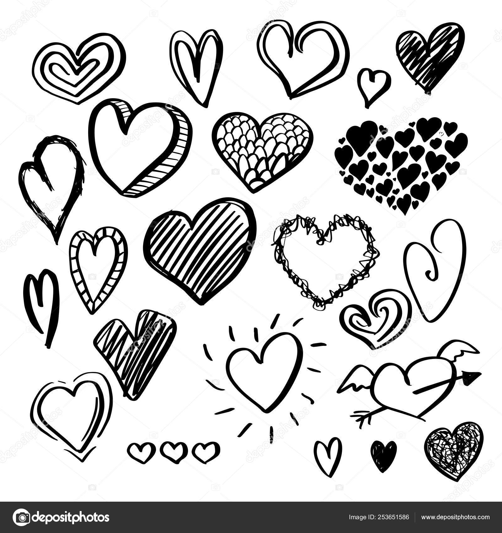 Set Of Outline Hand Drawn Heart Icon Hand Drawn Doodle Grunge