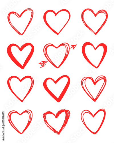 Set Of Red Hand Drawn Heart Royalty Free Vector Image