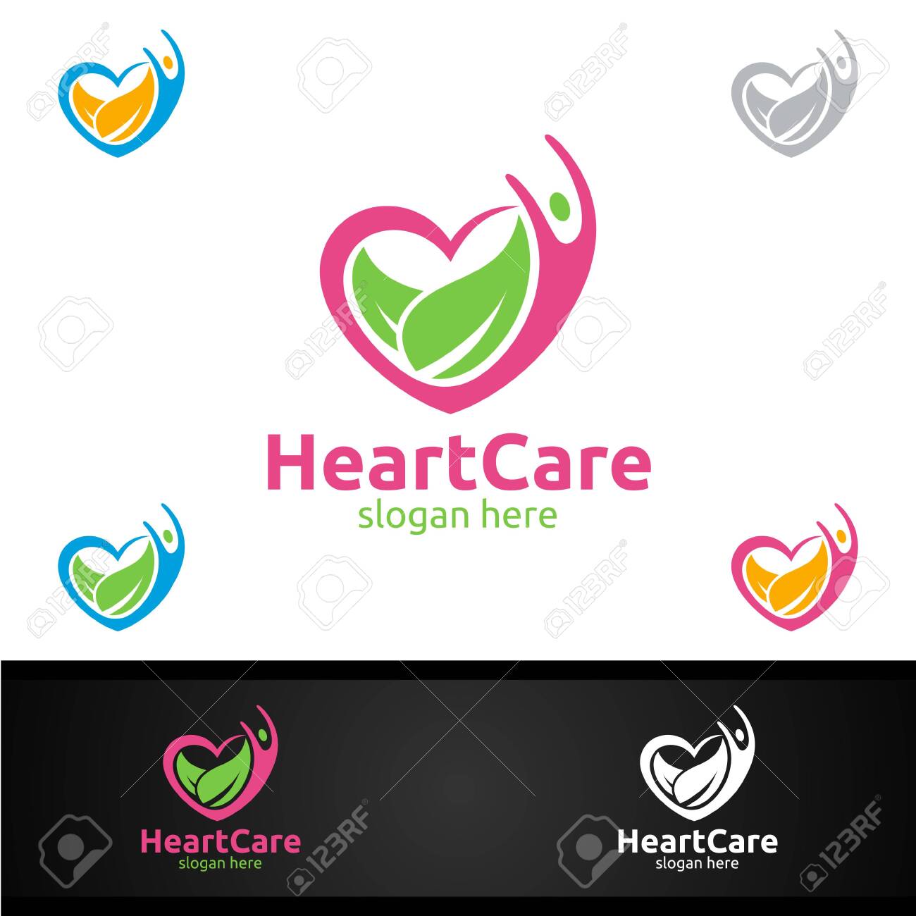Human Health Logo Design Healthcare Heart Shape Vector Logo