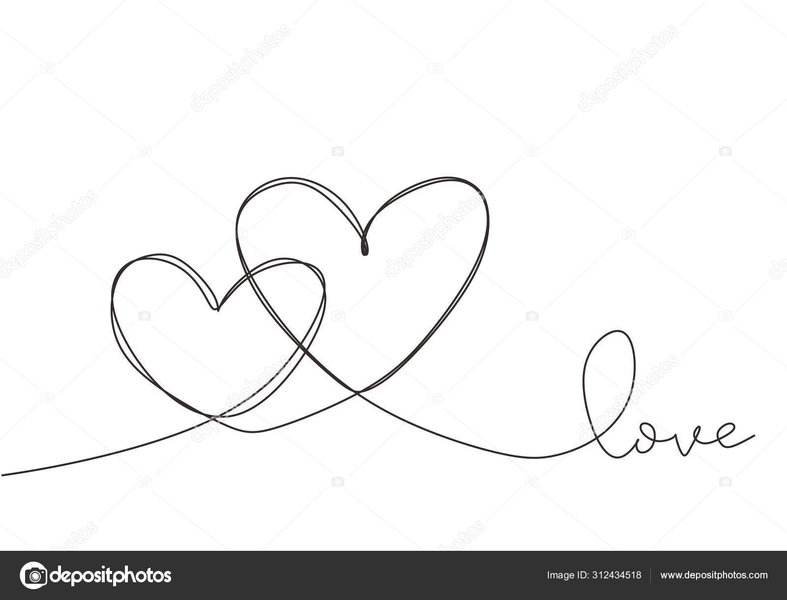 Continuous Line Art Drawing Couple Of Hearts Symbolize Love