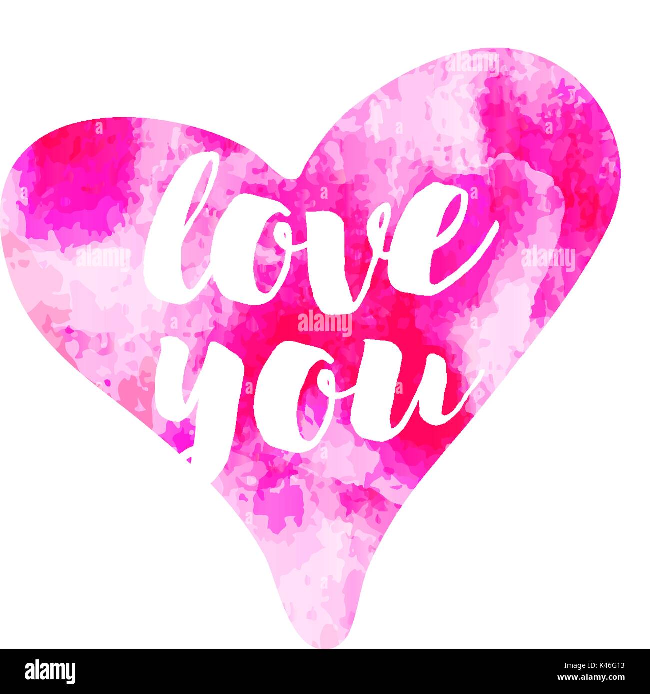 Vector Pink Watercolour Hearts Love You On White Background