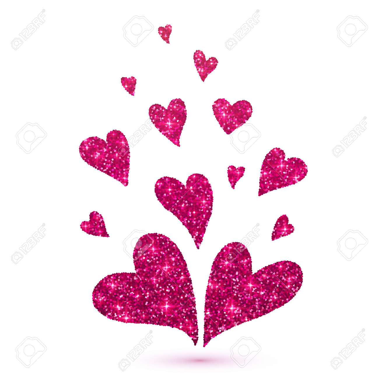 Vector Pink Glitter Hearts Isolated At White Background Royalty