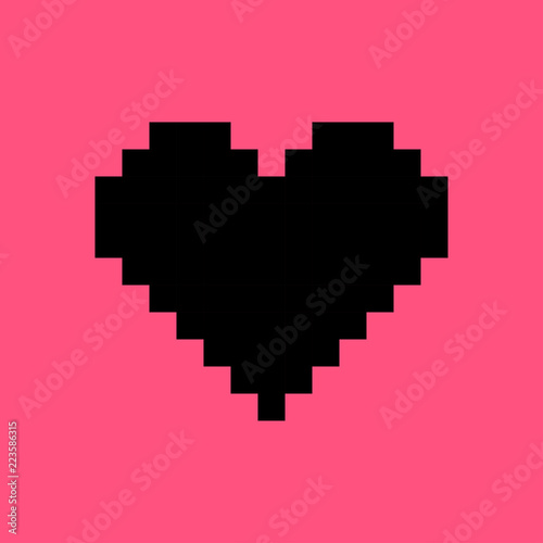 Silhouette Black Pixel Heart Vector Shape On Pink Background