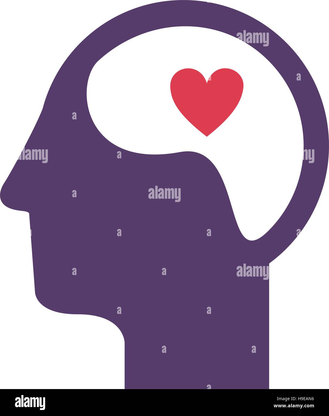 Purple Silhouette Head And Human Brain With Heart Vector