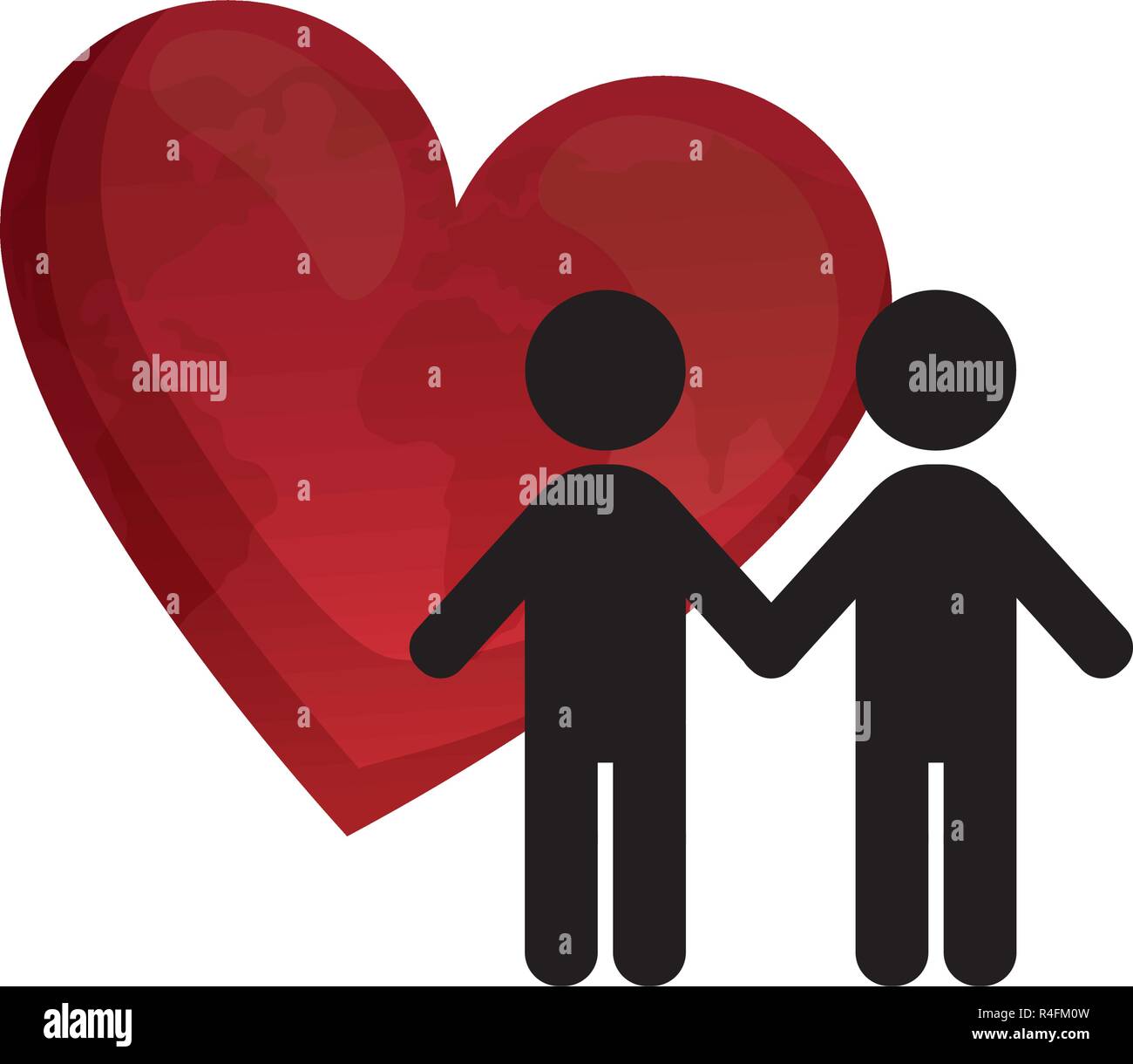 Male Gay Couple Silhouette With Heart Vector Illustration Design