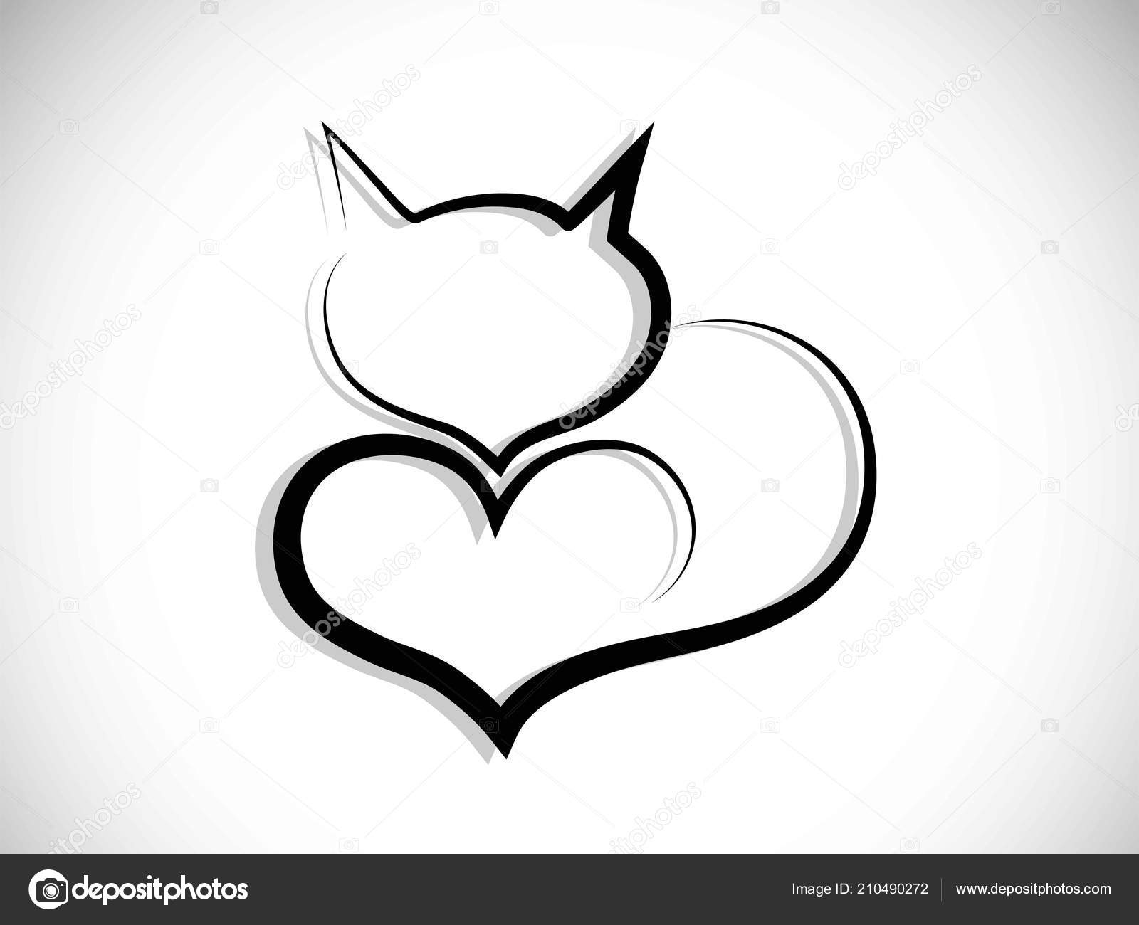 Cat Silhouette With Heart Vector Backdrop Illustration Stock