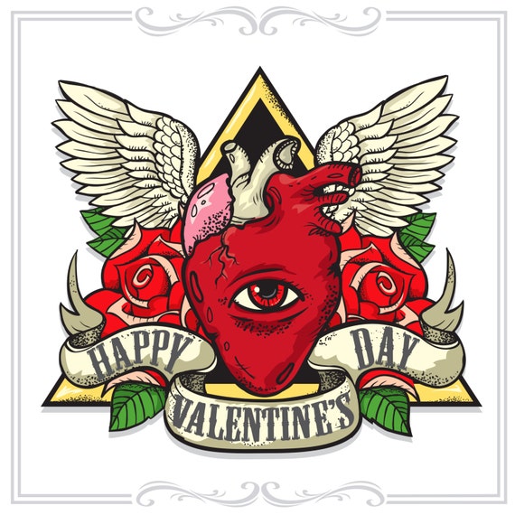 Vector Tattoo Art On The Theme Of Valentine S Day Etsy