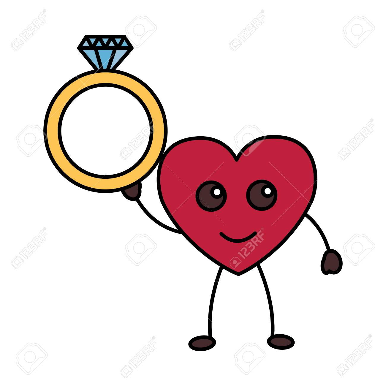 Kawaii Heart With Ring Happy Valentines Day Vector Illustration