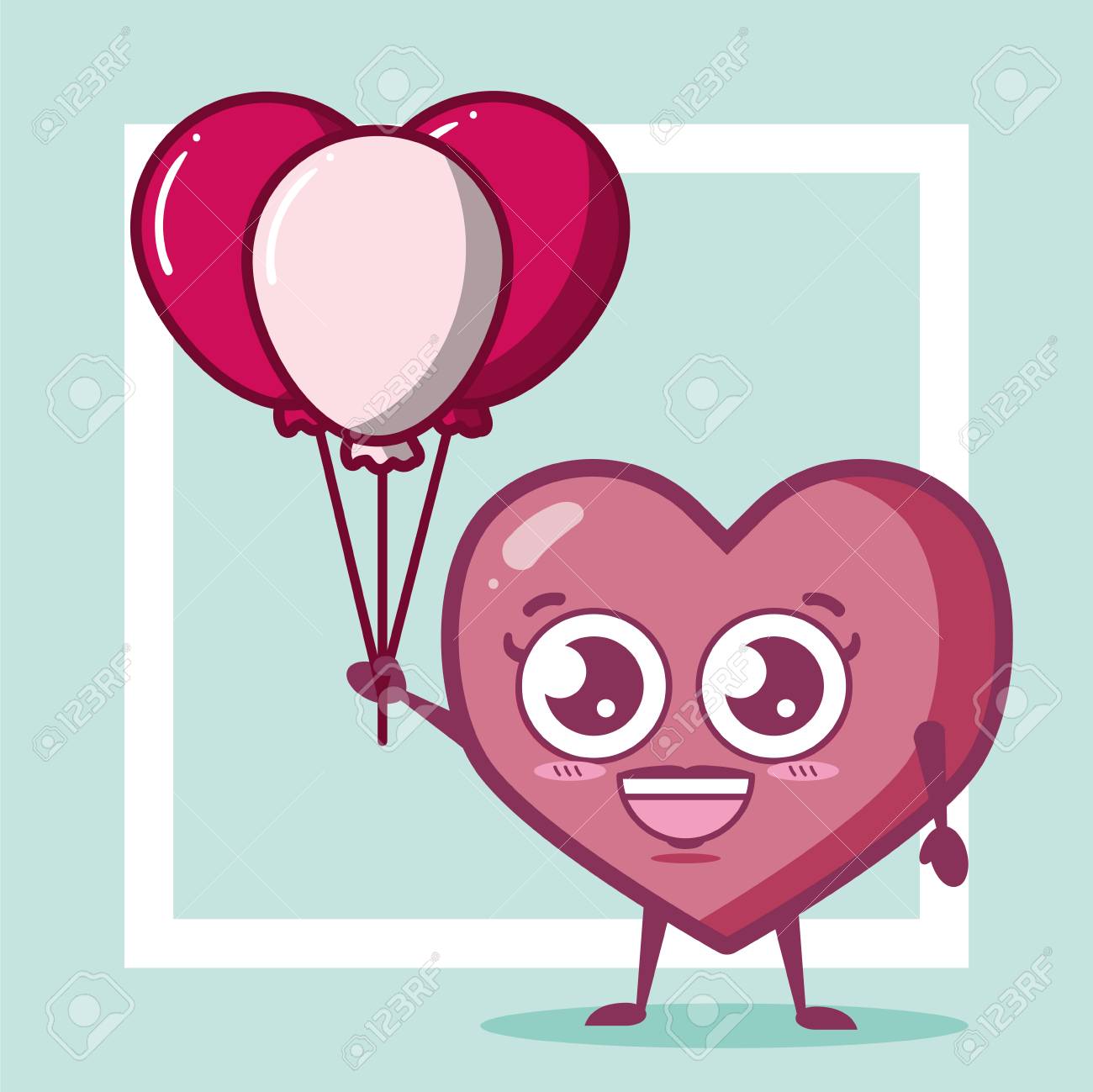 Kawaii Heart With Balloons Valentine Day Vector Illustration