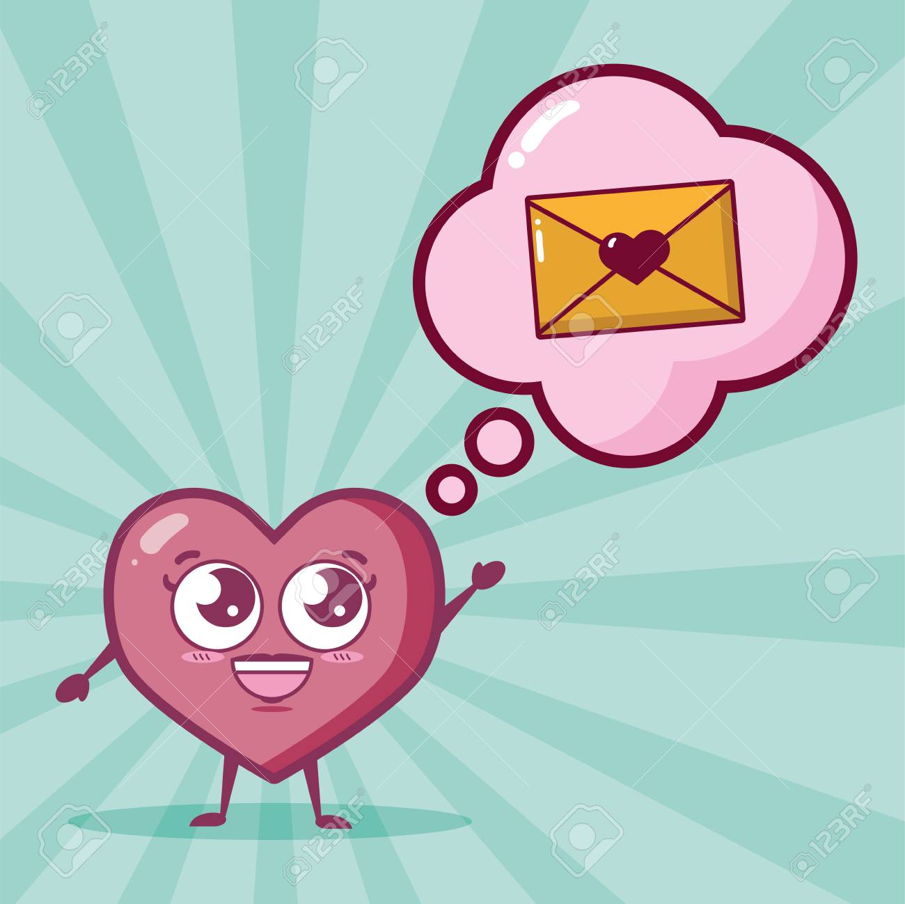 Kawaii Heart Mail Love Happy Valentines Day Vector Illustration