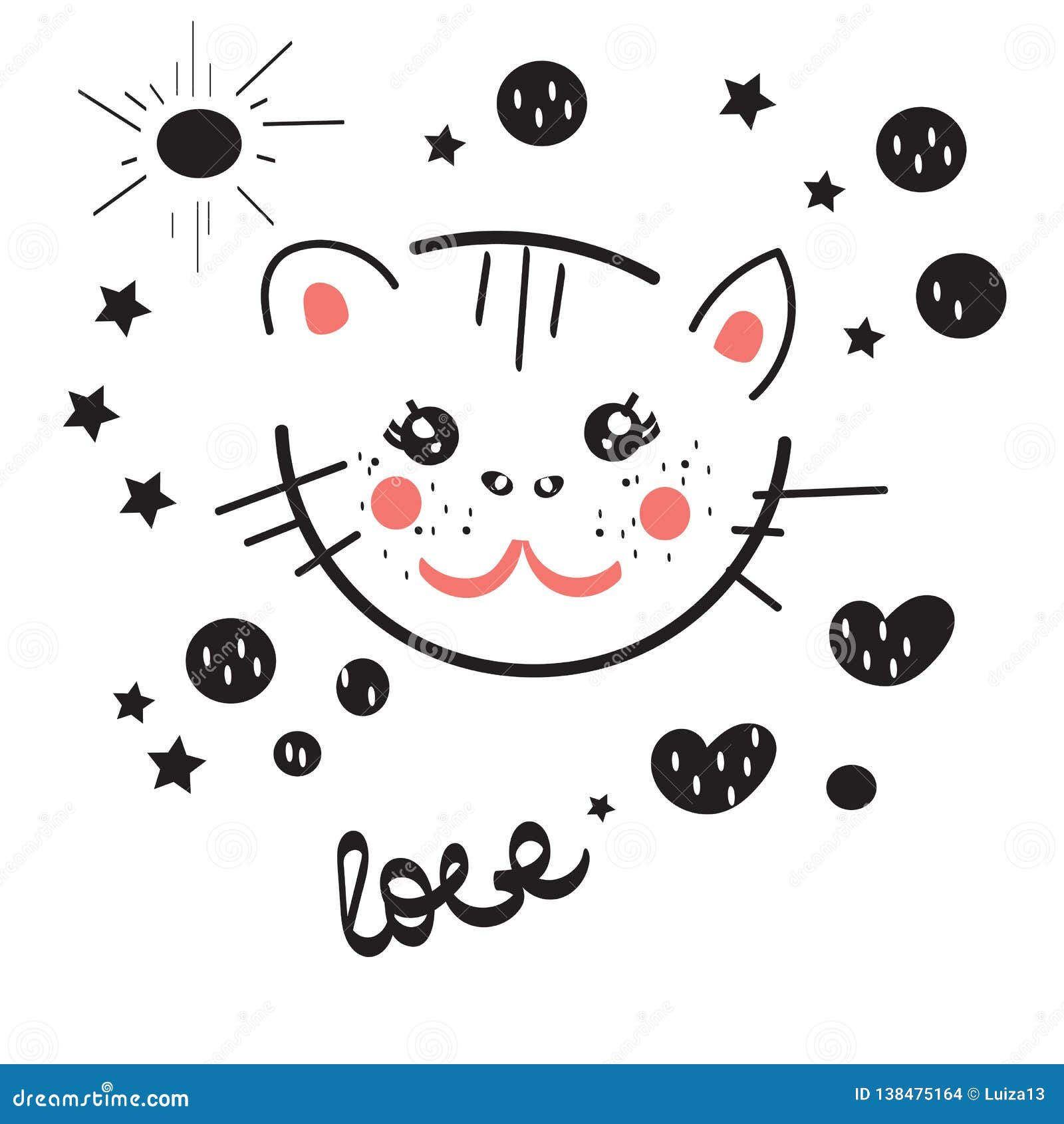 Kawaii Black Cat Heart Vector Illustration Stock Vector Royalty