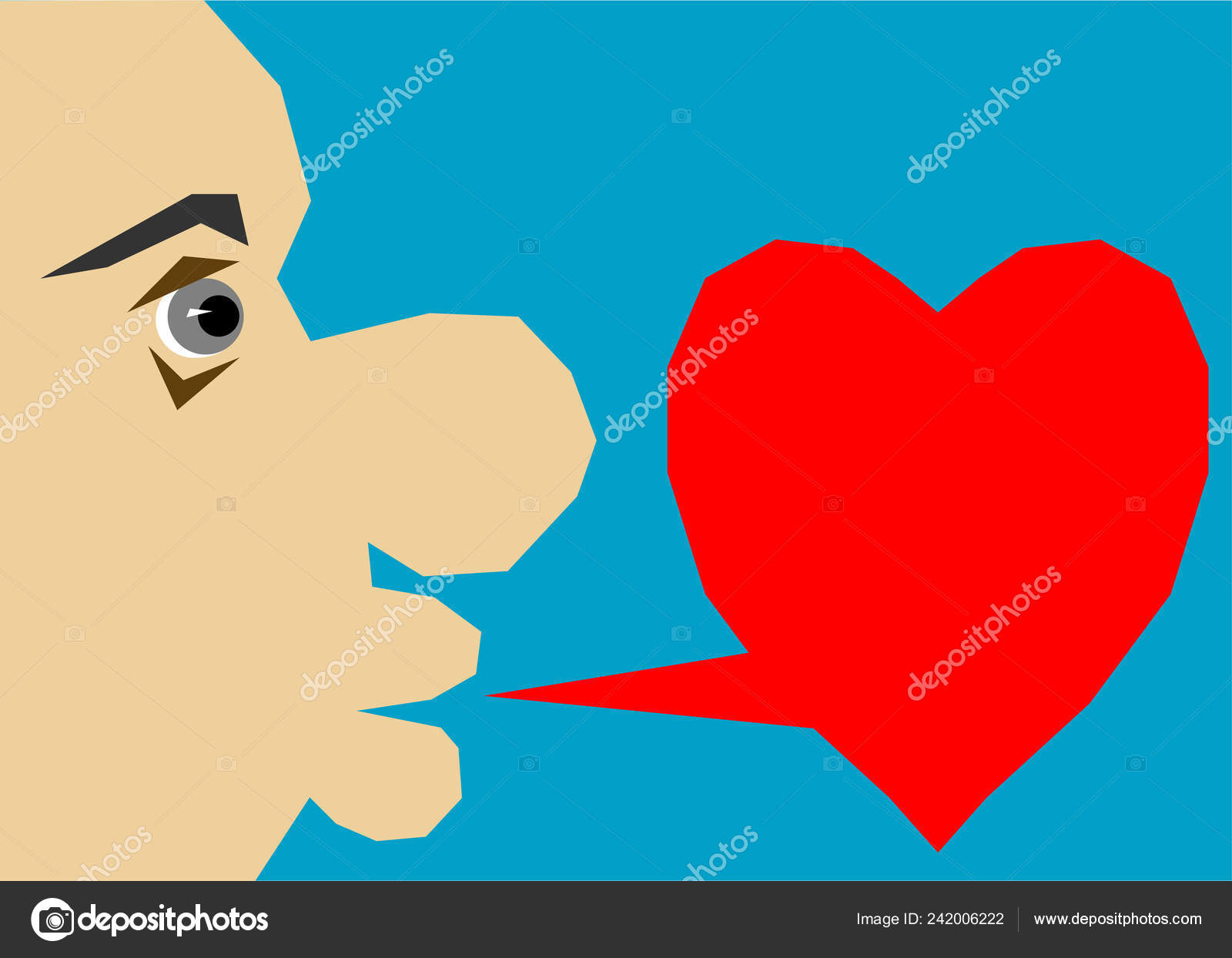 Half Face Mouth Open Kind Full Speech Bubble Shape Heart Stock