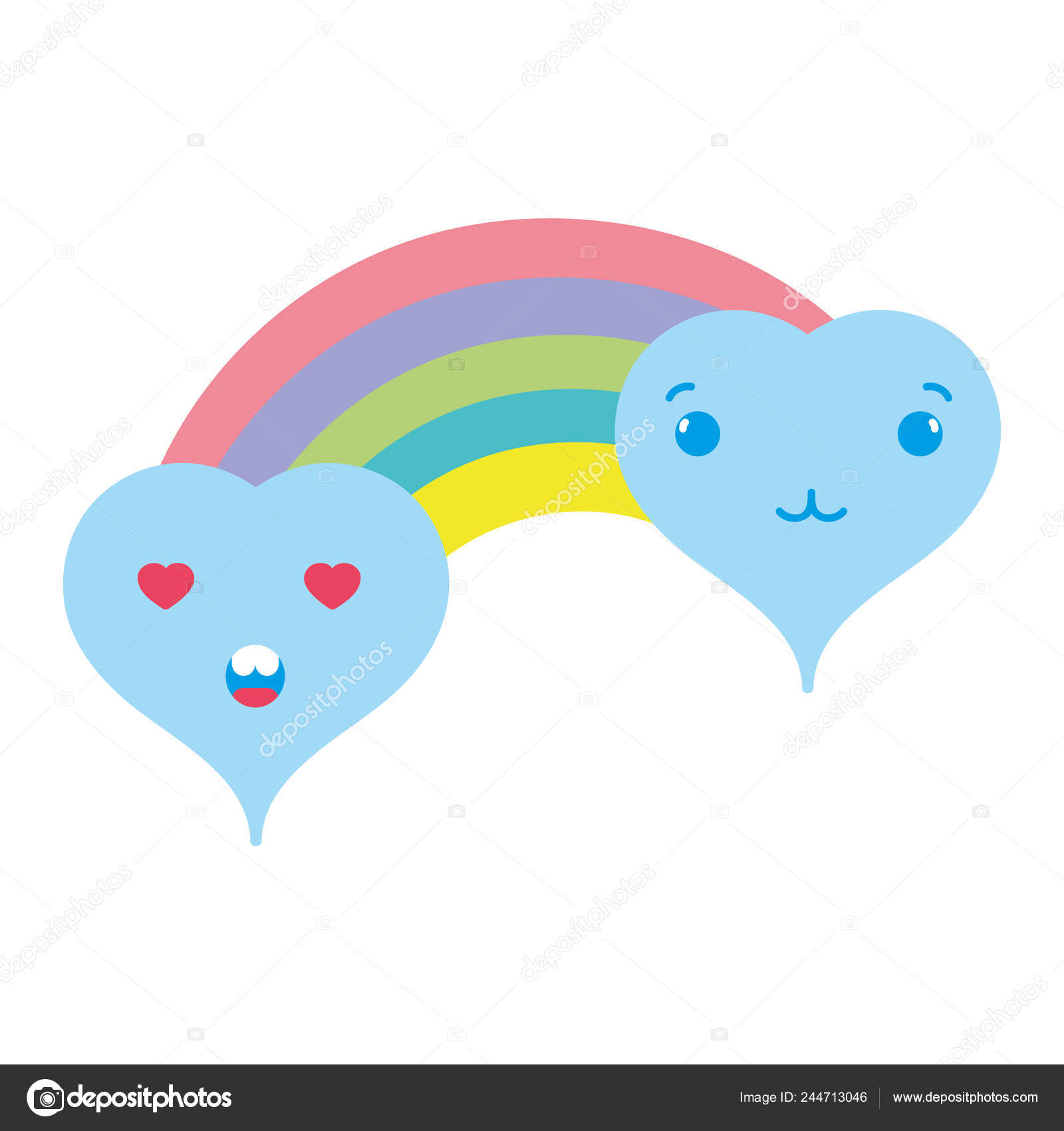 Colorful Tender Love Hearts Clouds Kawaii Rainbow Vector