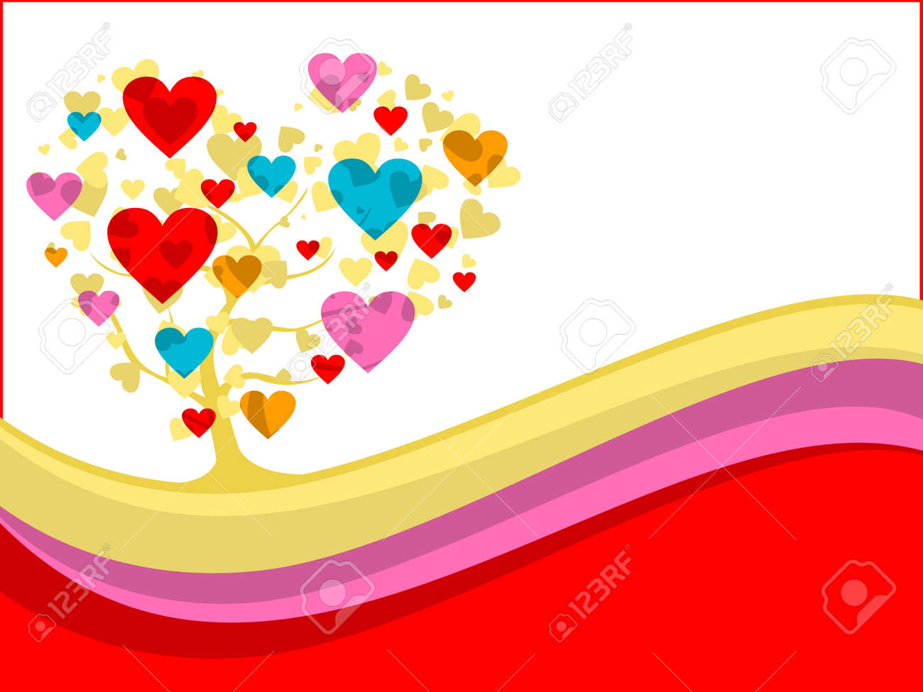 Abstract Wave Background With Colorful Heart Tree Vector Love