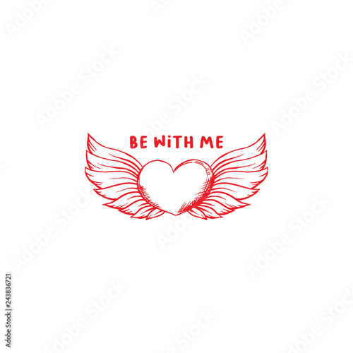 Flying Love Heart Wings Vector Illustration Graphic Design Stock