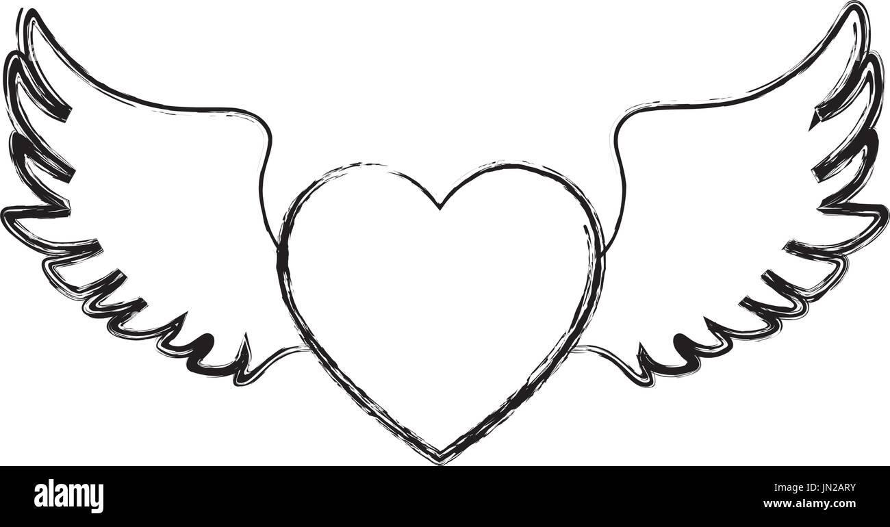 Drawing Heart Wings Vector Illustration Stock Vector Royalty Free